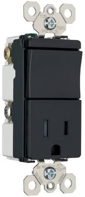 Pass & Seymour TM818TRBKCC6 Decorator Combo One Single Pole Switch and One Single Receptacle/Outlet, Black